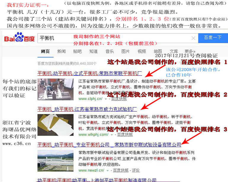 平衡機 : 2018-05-23上線 2018-06-08排名第5頁 2018-07-01排名第30名 2018-08-15排名第11名 2018-08-26排名第7名 (注:平衡機一臺需要幾萬到10多萬元, 是難排名的關鍵詞,百度重點關照,因百度推廣的話,大概要60元一點擊)